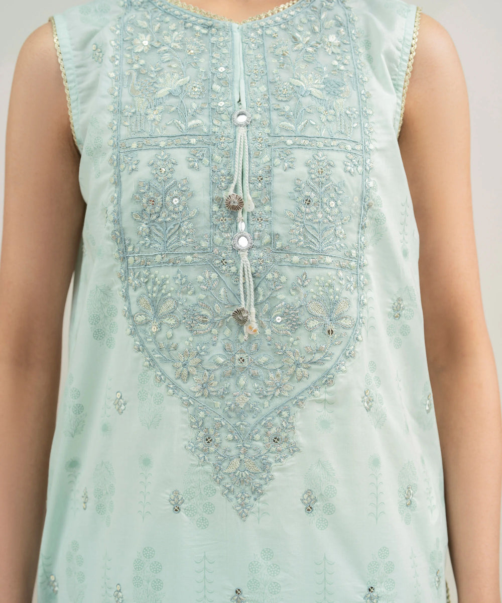 Slim Fit Straight Shirt with Trouser & DupattaColour: GreenFabric: Lawn